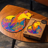 Look at this sly smile and the attentive eyes under the gentle eyelashes. Alluring Fox is hiding her paws with a fluffy tail, but she is hiding so much more than just her tail. She’s smart, and she has the forest figured out. Building this puzzle is like reading a story about how she tricked the bear and the wolf and hunted down the geese, chicken, and rabbits, all while enjoying her own beauty and the world around her filled with flowers and pretty patterns. Each piece will become another line in the tale of the Alluring Fox, and as you finish it, you’ll definitely ask for the next episode.