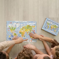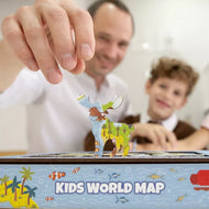 There are so many interesting things and creatures inside our Kids World Map-puzzle! Exotic animals, ocean dwellers and birds, different nations and architectural landmarks, various vehicles, from trains to sailboats.