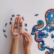 A standout feature of this puzzle is the unique lacquered pieces. They shine in the sun like water droplets, enhancing the expressiveness and magical charisma of the Octopus.